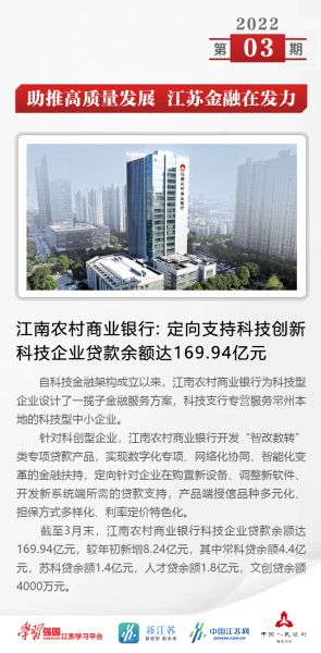 三、江南农村商业银行:定向支持科技创新 科技企业贷款余额达169.94亿元