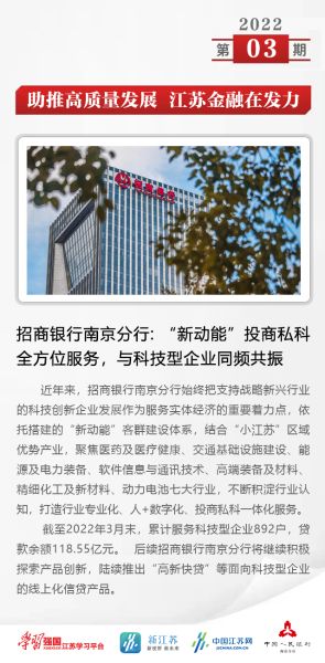 截至2022年3月末,累计服务科技型企业892户,贷款余额118.55亿元。 后续招商银行南京分行将继续积极探索产品创新,陆续推出“高新快贷”等面向科技型企业的线上化信贷产品。