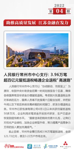 四、人民银行常州市中心支行:3.96万笔超百亿元留抵退税畅通企业退税”高速路”