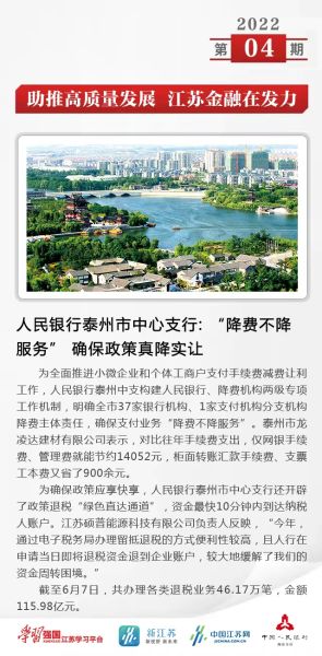 五、人民银行泰州市中心支行:“降费不降服务”确保政策真降实让