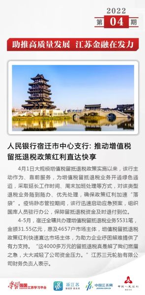 六、人民银行宿迁市中心支行:推动增值税留抵退税政策红利直达快享
